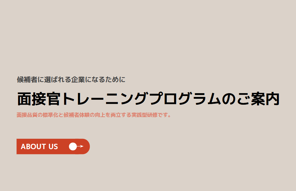 面接の属人化・評価のバラつきといった悩みを解消するための、実践的なトレーニングプログラムをご紹介しています。